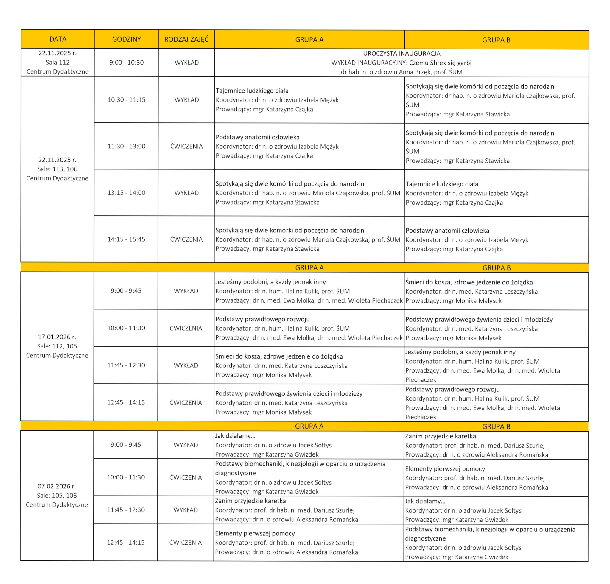 Harmonogram zajęć